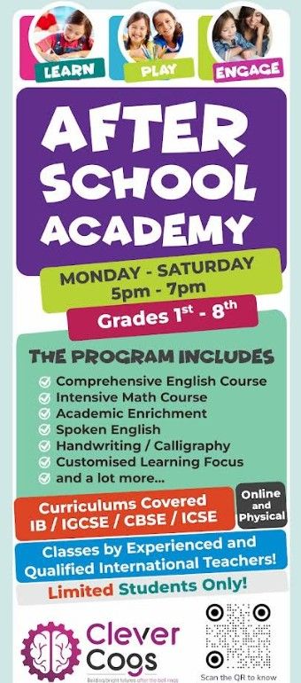 Students of Class 1, Class 2, Class 3, Class 4, Class 5, Class 6, Class 7, Class 8 can apply to join Clever Cogs. The institute has highly experienced teachers.